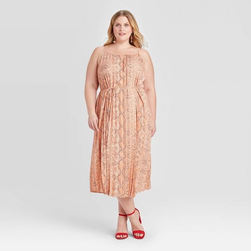Women S Plus Size Snake Print Pleated Tank Dress Ava Viv Pink