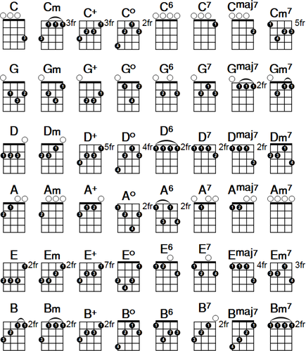 4 String Banjo Chords And Keys For Chicago Tuning D G B E