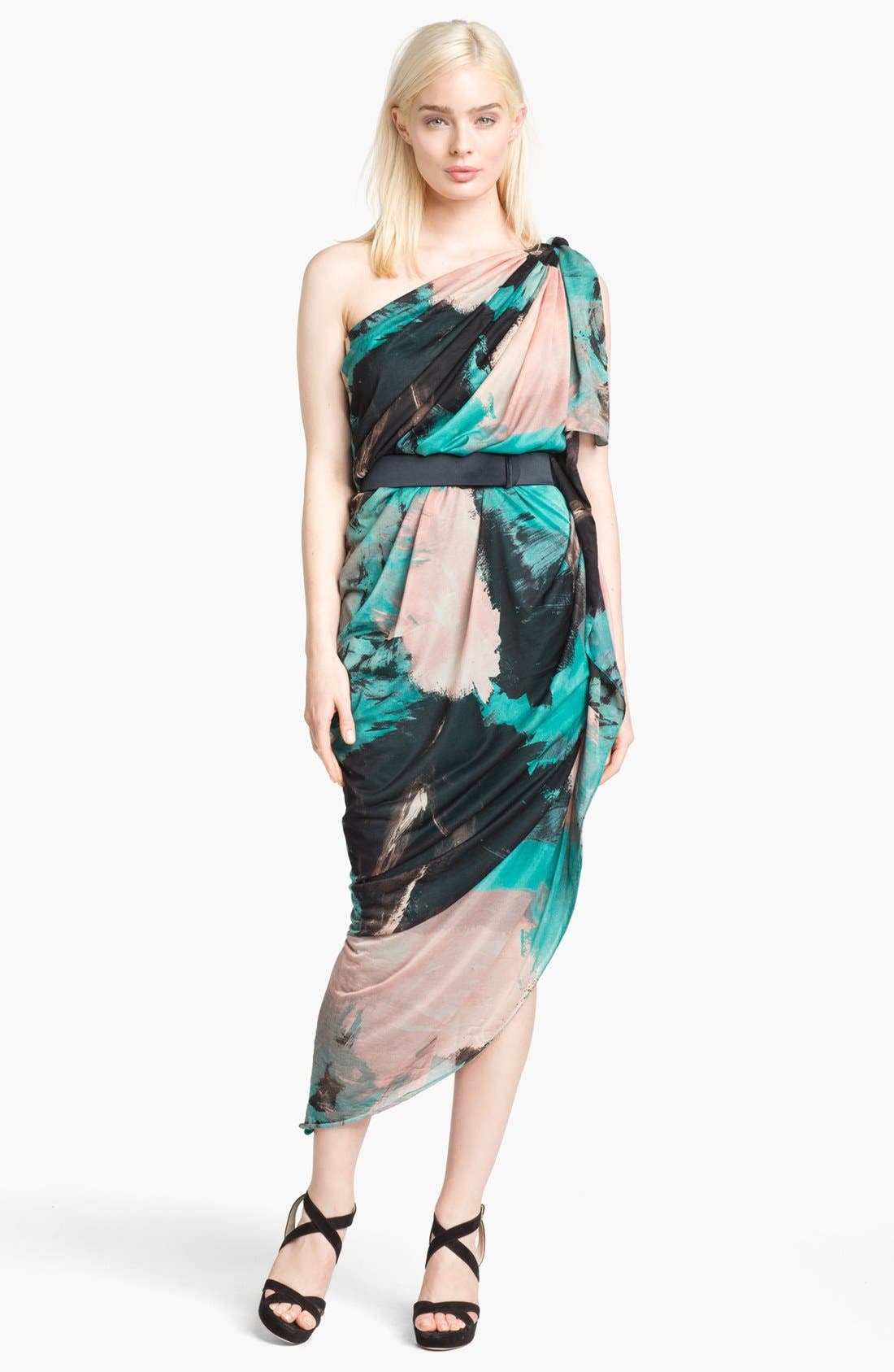 Halston Heritage Print Draped One Shoulder Dress Nordstrom