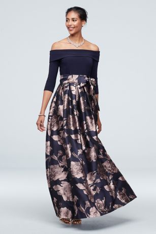 Off The Shoulder Gown With Jacquard Floral Skirt David S Bridal