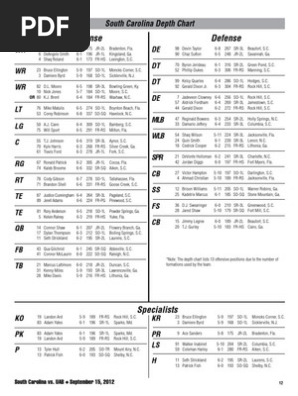 Notes And Depth Charts South Carolina Game Vanderbilt